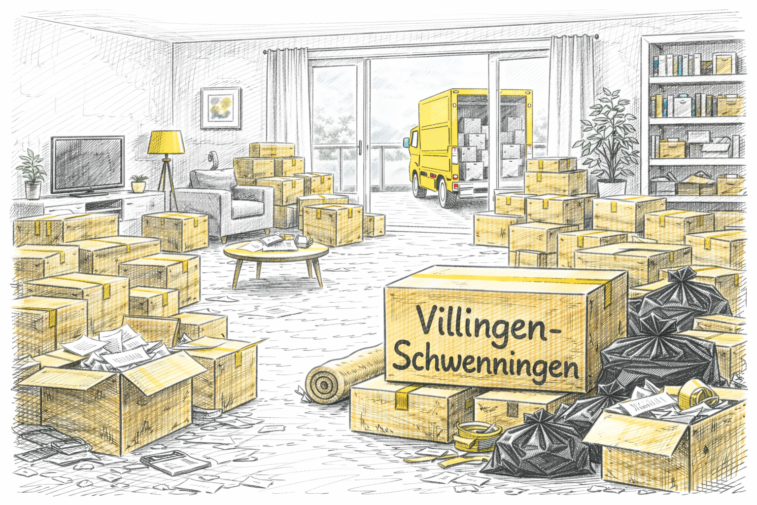 Stressfrei Wohnungen, Häuser, Garagen, Dachböden und mehr entrümpeln lassen in Villingen-Schwenningen und Umgebung – zuverlässig, einfühlsam und transparent zum Festpreis.